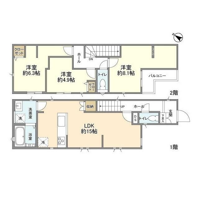 3LDK(LDK15 洋8.1 洋6.3 洋4.9) |
